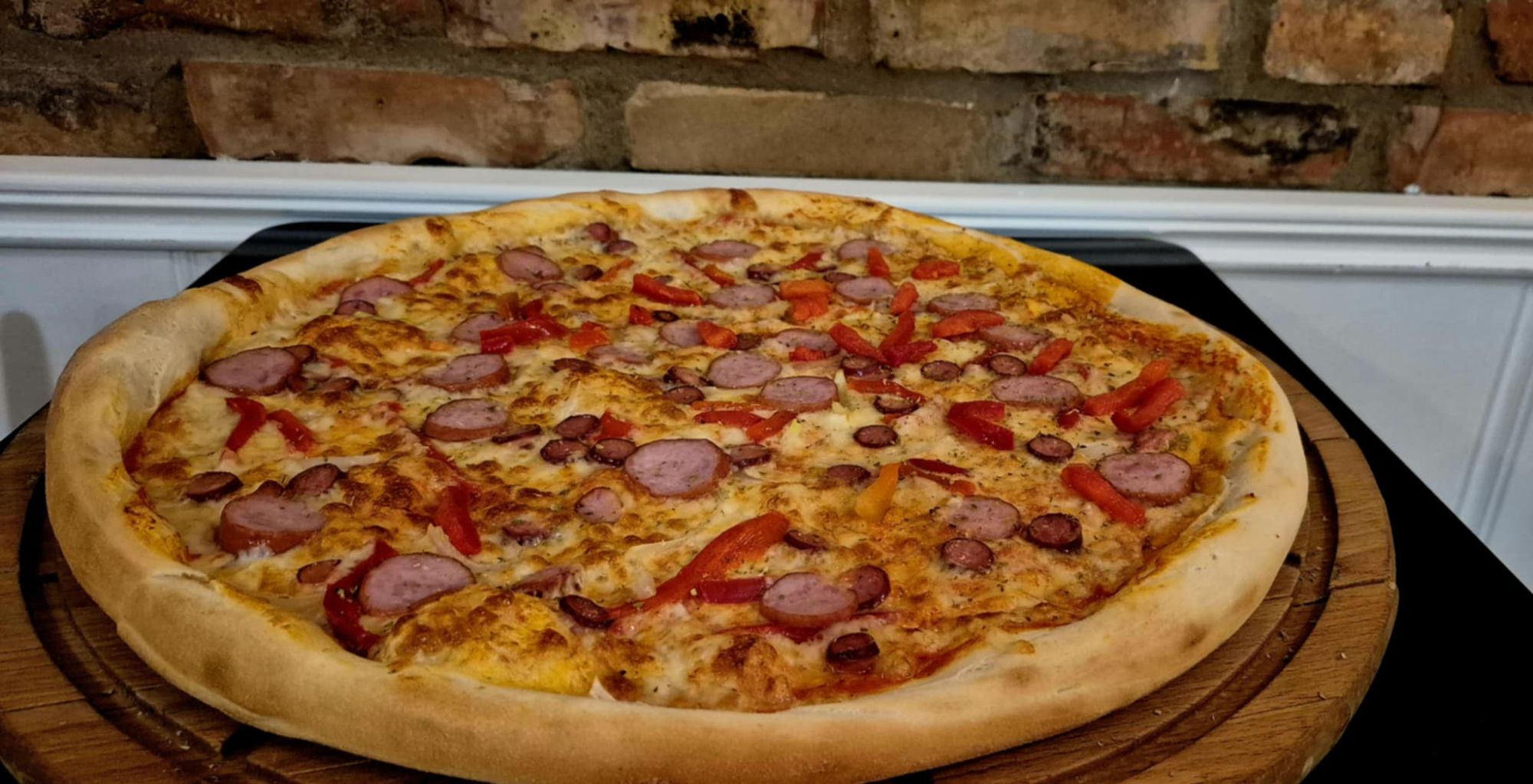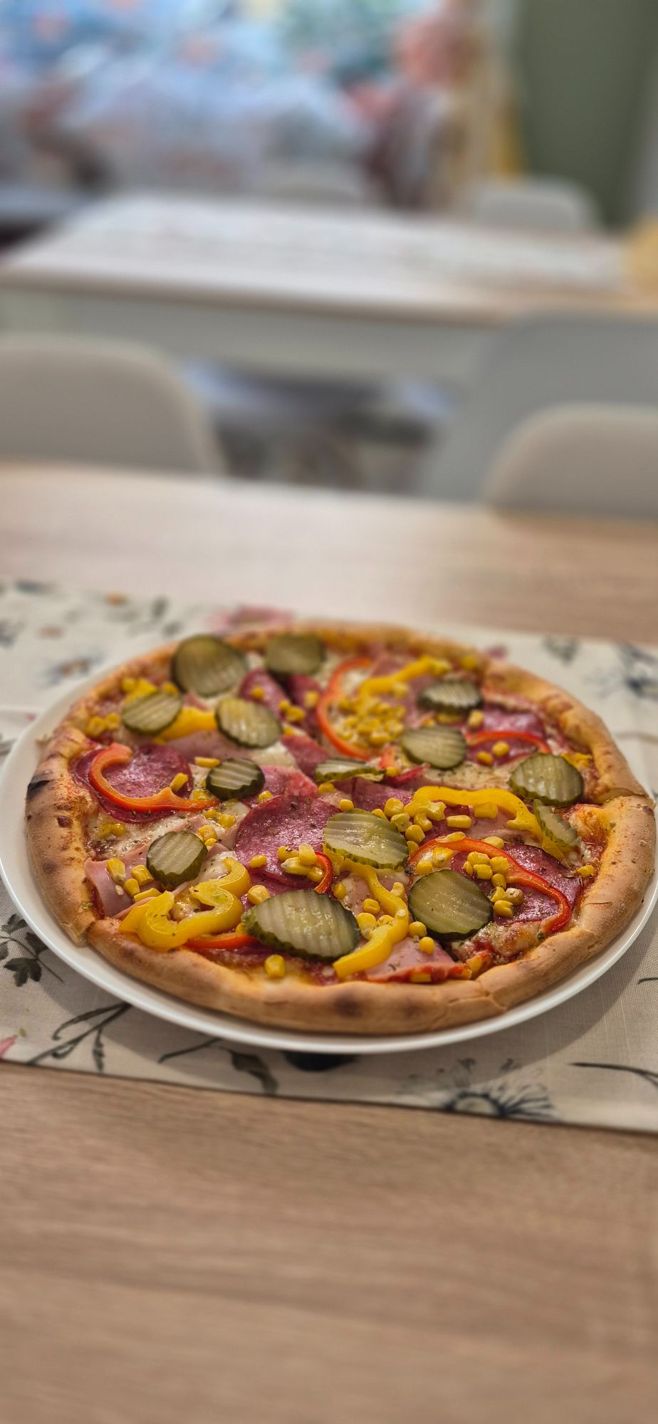 1 kawałek pizzy na sosie północna karolina, sos, ser, kurczak, kukurydza, papryka, ser lazur, 2 × salami -